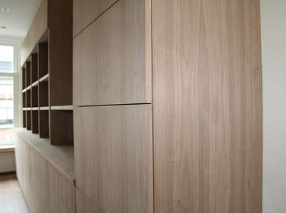 WANDKAST | PEPPERS INTERIORS | PLANKENKAST | GEFINEERD | NOTENHOUT | KLEP DEUR | WOONKAMER |